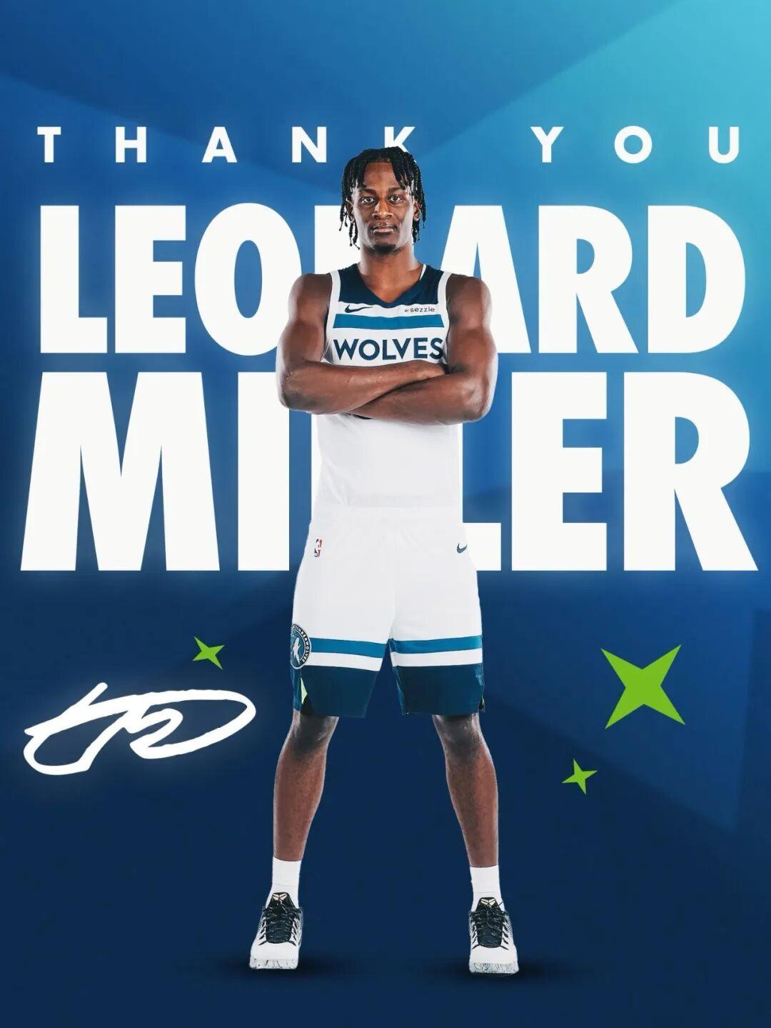 ——伦纳德米勒,2023届的次轮秀,生涯至今只打了49场比赛,其中本赛季,场均只上场5分钟,得到2.3分1.3篮板0.3助攻,投篮命中率54.5%。